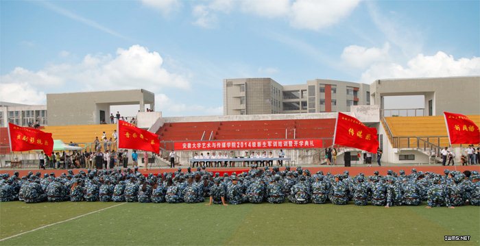 荷花映日笑迎八方学子,丹桂飘香共祝美好未来。9月28日上午,安徽大学艺术与传媒学院2014级新生军训结训暨开学典礼在体育运动场隆重举行。学院领导周之虎、赵枞安、胡献平,解放军电子工程学院二系主任申桂林,学院各系部、各部门主要负责人在主席台就座。各系教务秘书、学生管理秘书,全体班主任及2014级新生参加了此次典礼。典礼由副院长胡献平主持。