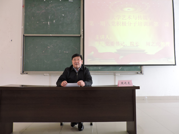 11月21日下午,安徽大学艺术与传媒学院第一期入党积极分子培训班开班式在第三阶梯教师举行。学院党委书记、党校校长周之虎参加开班式并为学员们主讲第一课《端正入党动机,增强政治意识,加强党性修养》。副院长胡献平,机关党总支书记周爱宝、副书记吴孔铎、宣传委员董兆和,各系直属党支部书记,第一期103名入党积极分子参加了培训班。开班式由综合办公室副主任、党校办公室主任曹晓富主持。