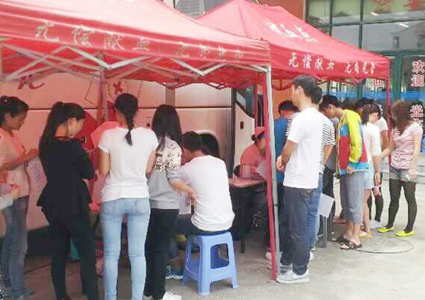 近期,合肥血站血源紧张,院团委与合肥中心血站联系,于5月28日在食堂东门开展了无偿献血活动。