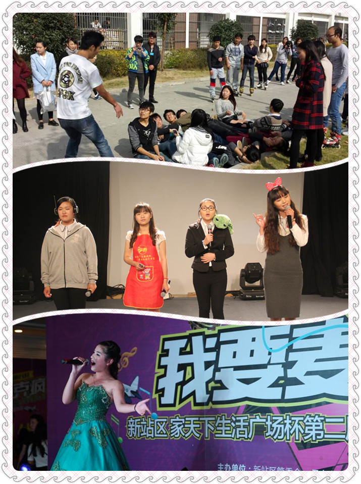 此外,院学生会文艺部采取“借别人的台,唱自己的戏”的思路,不断拓展文化艺术节的活动内容。他们一方面“走出去”,先后组织我院文艺爱好者们参加了浙江卫视主办的“中国好声音”合肥赛区选拔赛、新站区管委会主办的新站区大学生音乐节等活动,另一方面“请进来”,邀请万家热线主办的“校园女神”大赛来到校园进行海选,并引进中国邮政储蓄银行卡面设计大赛、合肥孕妈徽章设计大赛、大学生文化创意大赛等项目进入校园设立专属赛区。丰富多彩的活动受到同学们热烈欢迎,也让各路英雄大展身手,在新站区管委会主办,新站区团工委、江淮晨报承办的新站区第二届大学生音乐节——“我要麦克疯”总决赛中,我院李奔、王瑞同学名列前茅,张娜同学获得亚军,得到赴韩国首尔五日游的奖励。