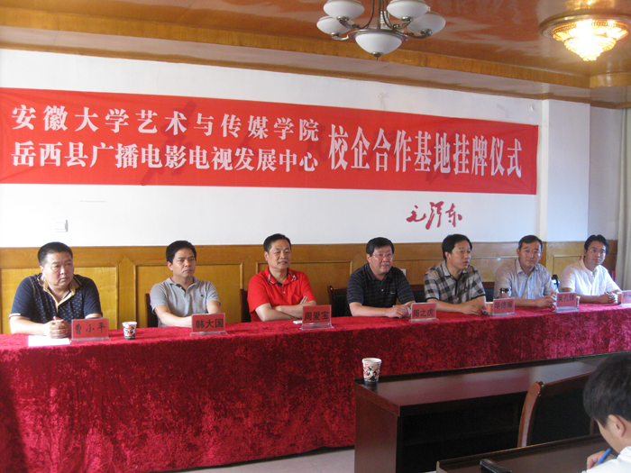 7月19日上午,周之虎书记带领大家一路风尘仆仆从合肥赶到岳西,直接抵达岳西县广播电影电视发展中心,举行我院和县广播电影电视发展中心校企合作基地的挂牌仪式。