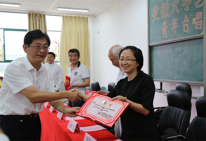 成立大会在同学们激情演绎的合唱曲《 神圣的战争 》中拉开了帷幕。在接下来的嘉宾致辞环节中,安徽省音乐家协会副秘书长徐海燕高度赞扬了学院的求真务实精神,她祝愿学院青年合唱团能茁壮成长,学院能加快建设的步伐,早日打造出安徽省一流的艺术院校。安徽省合唱协会主席徐俊松宣读了安徽省合唱协会的贺信,他肯定了青年合唱团的演唱功底,祝愿青年合唱团用美妙的歌声丰富大学生活,用清纯的歌声塑造奋斗的人生,用和谐的歌声走向全国,走向世界!
