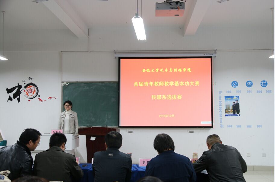 为贯彻实施院政【2015】24号《关于举办安徽大学艺术与传媒学院首届青年教师教学基本功竞赛的通知》的文件精神,10月30和31日,为期两天的首届青年教师教学基本功竞赛传媒系选拔赛圆满落幕,传媒系四十周岁以下的青年教师参加了比赛。