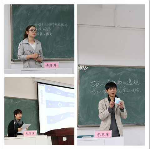 传媒系本次选拔赛严格遵照学校大赛的规定和要求,竞赛内容分为教学设计、说课和课堂教学三部分组成,分别占总成绩的10%、20%、70%。要求每位教师在10分钟的说课和20分钟的课堂教学中,通过多媒体与板书的结合将教学内容形象地呈现。参赛教师着装得体,精神饱满,语言准确、表述流畅,合理利用多媒体教学手段,教态自然大方。