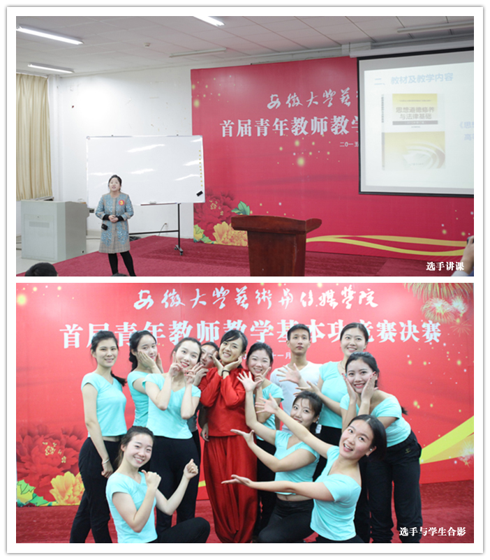 教学竞赛的内容由说课和授课两部分组成。说课环节中,选手们分别对课程、教材教法、学情、教学设计一一说明,有的思路清晰,有的逻辑性强,有的鞭辟入里,有的融入了全新的教学理念。授课环节中,选手们从专业和学生的实际出发,运用现代教学手段,施展出色的语言魅力、倾注的专业精神、美妙的环节设计,充分调动了课堂气氛和学生的积极性。综合组的比赛中,来自公共教学部3号选手陈昀岚老师在充分分析课程教学目标和学生实际的基础上,从案例入手,生动地阐述了“人生的价值”的内涵,讲述过程逻辑性强,语言极富感染力,博得评委的高度评价。表演组的比赛中,教师们不仅传授艺术,还以吹拉弹唱演等方式展示了他们的专业技能,现场气氛热烈。来自音乐舞蹈系的15号选手陈萌老师的独舞《九儿》,以饱满的情绪、妙曼的舞姿,将舞蹈的魅力发挥得淋漓尽致,也给大赛划上了圆满的句号。选手们精湛的教学技艺和艺术才华不仅展示了学院青年教师的教学风采,更完美诠释了“教艺结合,以赛促教”的竞赛宗旨。