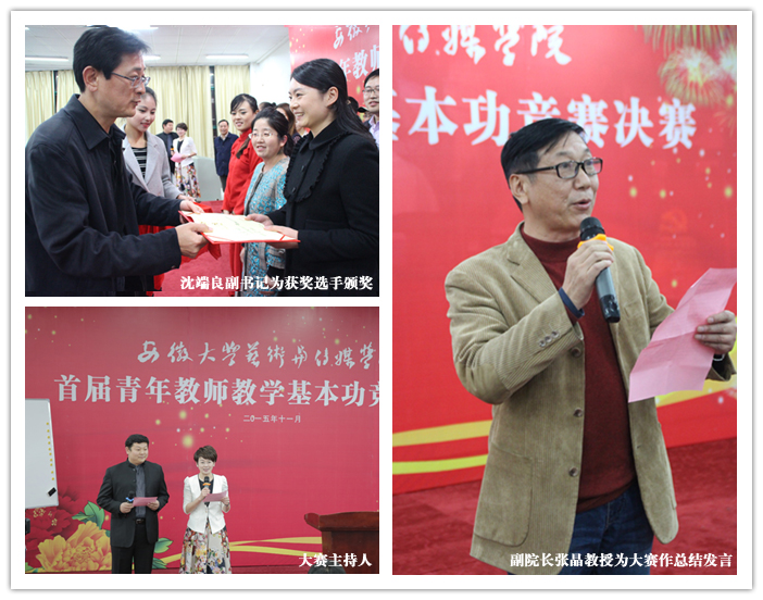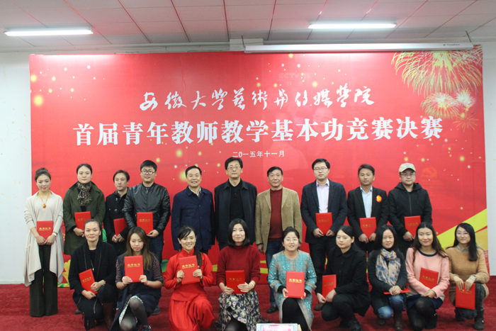 11月7日,学院首届青年教师教学基本功竞赛决赛如期举行。来自四系一部16位选手分别在综合组和表演组一展教学风采。学院成立以副院长张晶教授为主席的九人评委会。特邀安徽大学新闻传播学院副院长吕萌教授、安徽大学艺术学院副院长田雅丽教授担任大赛评委。学院教师和部分学生共一百多人全程观摩了决赛。