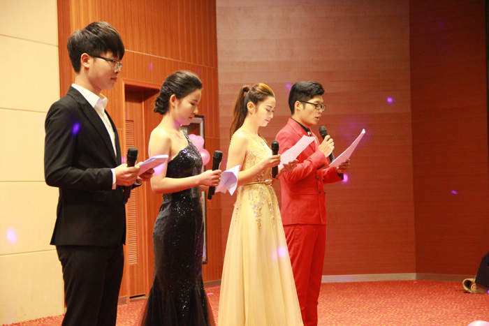晚会在我院发光体舞社演员激情的舞蹈串烧中拉开帷幕。一首激情四射的粤语串烧点燃了现场的气氛,两位四海曲艺社同学的相声《说学逗唱》幽默诙谐,引起了现场观众的阵阵笑声,小品《监考老师》生动诠释了当代师生之间的默契与乐趣。吉他、小提琴、古筝、二胡等一个个乐器表演,异彩纷呈,引人入胜。神奇的魔术表演、霸气十足的双节棍、酷炫十足的Bbox表演更是将现场的气氛推向了高潮。整场晚会精彩不断,高潮迭起,赢得台下观众阵阵掌声,欢呼声一浪高过一浪。一首精彩的乐器联奏《金蛇狂舞》为晚会画上了圆满的句号。同时晚会还穿插着进行了“校园十佳记者”颁奖仪式。值得一提的是,本次晚会首次开通了校园记者站微博墙,台下观众可以通过微博时时与舞台进行互动,并参与微博抽奖。