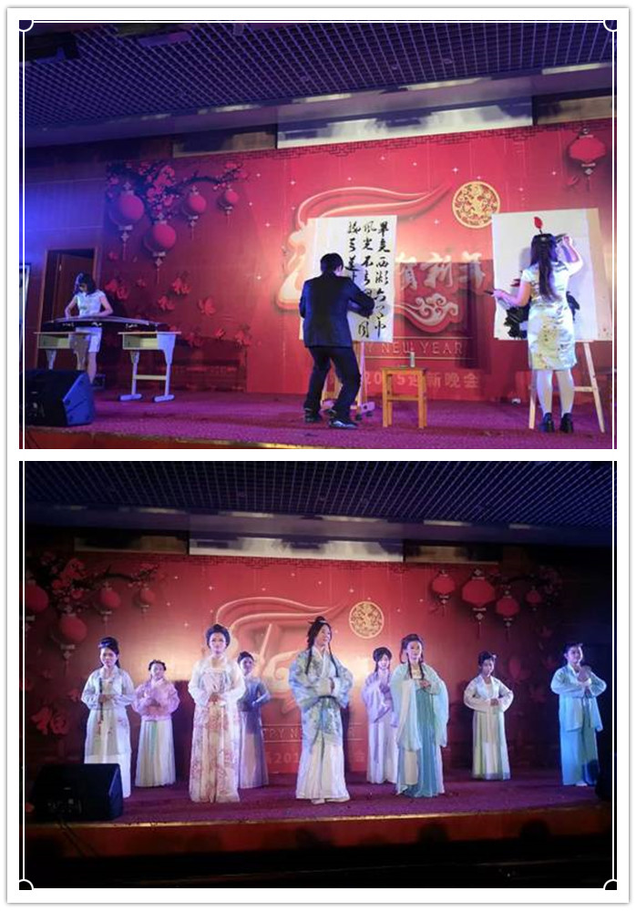 联欢会在黑曜乐队精彩的歌曲中拉开帷幕。小品《东厢记》演绎了不一样的张生与崔莺莺的爱情故事;相声《天赐良缘》幽默诙谐;魔术表演奇幻莫测;话剧《青春》意指大学生学习生活,短小精悍、意味深长;荧光舞《fantastic baby》将荧光与舞蹈有机结合,绚丽的视觉冲击,给大家奉献了完美的视觉大餐;《汉服展示》不仅带来了视觉享受,也让大家学习了中华民族的传统文化;《书画表演》集书法、绘画于一体,配以筝的优美旋律,展示了生动的课堂瞬间。联欢会节目形式多样、精彩纷呈,现场气氛活跃。