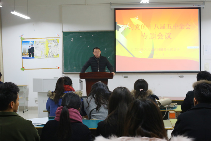 刘涛老师最后总结时说,各班级团支部一定要认真学习党的十八届五中全会精神,牢记共青团宗旨,脚踏实地,从身边做起,从小事做起,起到模范带头作用,积极参加团总支开展的各项活动。他也对近期的工作安排做了安排。