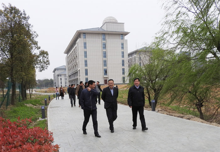 窦先萍书记对周之虎书记一行到来表示热烈欢迎,她介绍了湖北美术学院的基本情况。考察组一行深入湖北美术学院藏龙岛新校区,详细了解湖北美术学院建设项目的规划、布局及建设进展,重点对该校的校园设计及园林绿化进行了考察。湖北美术学院的校园设计理念“低楼层、原生态、高品质”给考察组留下了深刻印象。