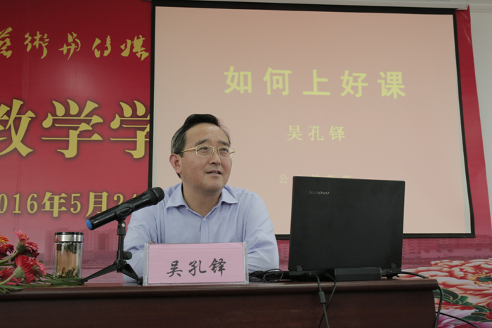 作为学院首届教学学术研讨会系列活动之一,5月30日下午,省级教学名师吴孔铎教授在一教第二阶梯教室为全院教师作了题为“浅谈如何上课的点滴体会”的学术讲座,讲座由公共教学部主任吕中华主持。