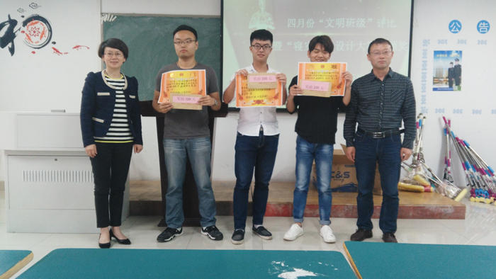 6月2日下午,新闻播音系举行“文明班级、寝室美化设计大赛”颁奖仪式。14新闻采编与制作班、14播音主持3班、15广电2班分别获得文明班级月评第一、二、三名。寝室美化设计大赛共评选出30个最美寝室。新闻播音系党总支副书记张志云、学生管理办公室主任刘涛为文明班级颁发了奖状和班费,向最美寝室送去了拖把、洗衣液等奖品。