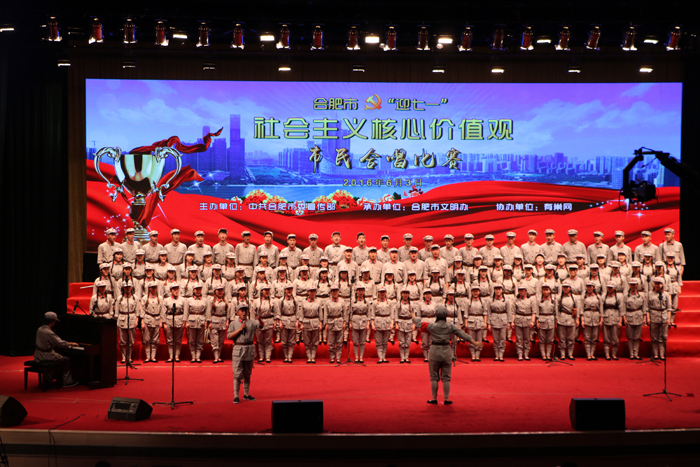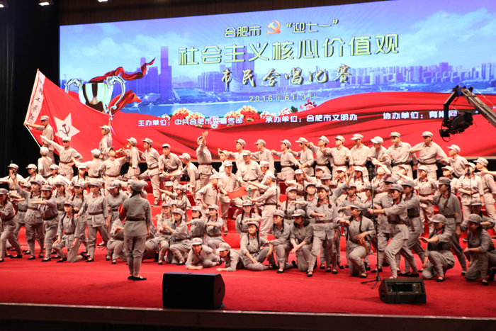 6月3日下午,合肥市迎“七一”唱响核心价值观合唱比赛在合肥市政务区大礼堂隆重举行。共有合肥市各县区、开发区选送的15支代表队参赛。