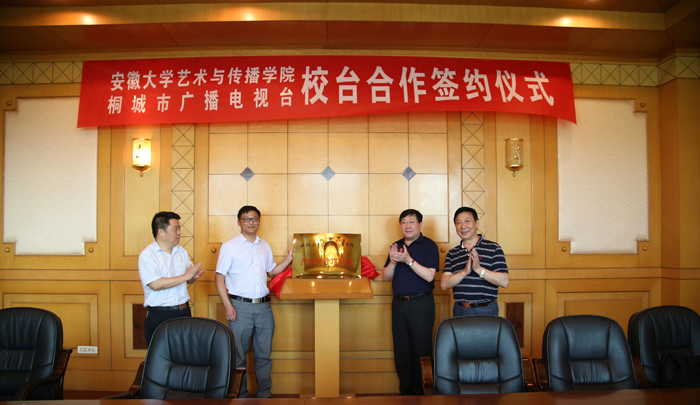 随后,周之虎书记与桐城市副市长张支南为“安徽大学艺术与传媒学院产学研合作基地”揭牌,并共同见证了“校台合作签字仪式”。