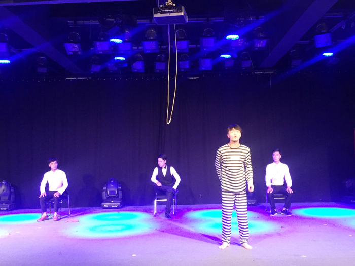 6月24日下午1点,戏剧影视系14表演班在1号演播厅举行期末汇报演出。院领导周之虎、沈端良、张晶、郑善忠到场观看。