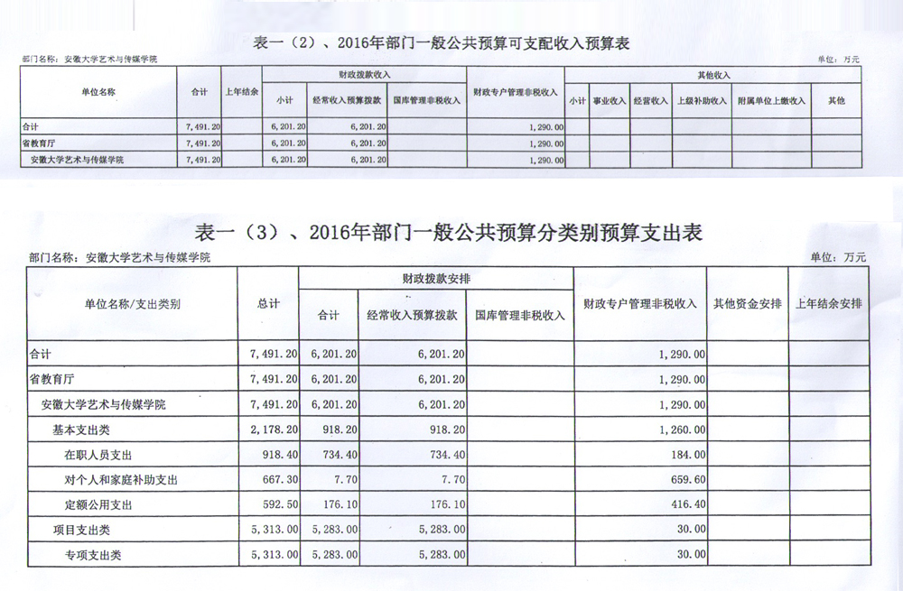 根据省教育厅皖教秘财[2016]71号文件《关于批复2016年省级教育部门预算的通知》,我院2016年部门预算如下: