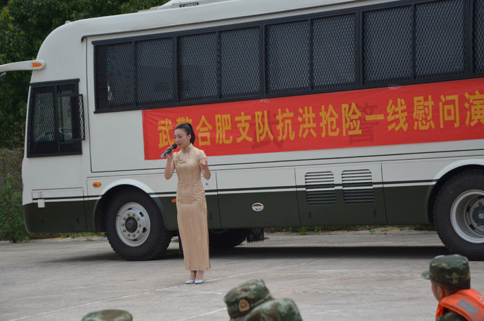 今年入夏以来,我省遭遇了严重的洪涝灾害,人民子弟兵不畏艰险,勇于担当,积极投入到抗洪前线。武警合肥市支队官兵坚守在肥西三河古镇、严店乡等巢湖大堤上。作为该支队共建单位,安徽大学艺术与传媒学院心系灾区群众和抗洪战士的安危,在学院党委书记周之虎的关怀指导下,在抗洪最紧张的7月上旬,派遣相关艺术专业老师前去三河镇和严店乡慰问演出,把最美的歌声献给子弟兵,把最美的祝福送到抗洪第一线。