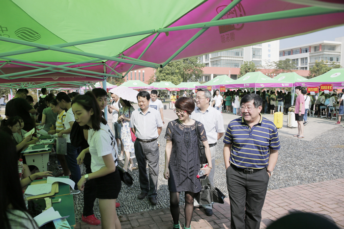 迎新期间,校领导周之虎、沈端良、张晶与各系、相关职能部门负责人一道,来到迎新现场检查指导迎新工作,仔细查看迎新现场各个接待点的工作流程,详细了解迎新工作的进展情况,慰问各系、部门的工作人员和志愿者,对迎新工作给予充分肯定。同时也结合学校实际和各系特色,提出具体改进意见和建议。并与新生及家长亲切交谈,倾听他们对学校发展的良好意见和建议。