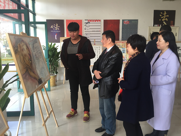 2016年12月5日由安徽大学艺术与传媒学院公共教学部主办,美术设计系承办的“12.4国家宪法日暨青少年法制教育宣传周艺术作品展”在第二教学楼一楼大厅隆重开幕。学院副院长张晶出席并作重要讲话,教务处处长韩大国,公共教学部主任吕中华,美术设计系党总支书记、系副主任罗耀东,美术设计系党总支副书记张丽丽,音乐舞蹈系党总支副书记李伟及学院各部门负责同志参加展览开幕式并参观。
