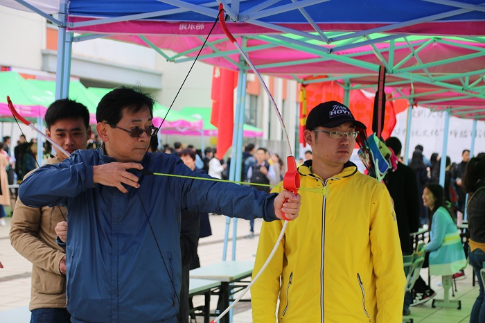 本次“礼敬中华传统文化”体验日活动与往届相比更加注重学生们的参与和传统文化的体验。在各个体验展区,文学社的同学们玩起了对对联、对诗词、传统文化知识问答活动;器乐专业的同学们弹起了古琴、拉起了二胡,引人驻足欣赏、倾听;汉服社开展了狼人杀、你画我猜、看图猜成语等游戏;特邀的安徽中医药大学“五禽戏”社团的同学们和大家进行了传统养生的交流。参加开幕式的领导和嘉宾们还饶有兴趣的与在场师生们一起在射箭展区互动交流。而随着诗词大会火爆起来的《飞花令》游戏最受欢迎,同学们积极报名参加,大家争先对句,脑力风暴,互不相让,在游戏的氛围中体会中国古代诗词的无穷魅力。