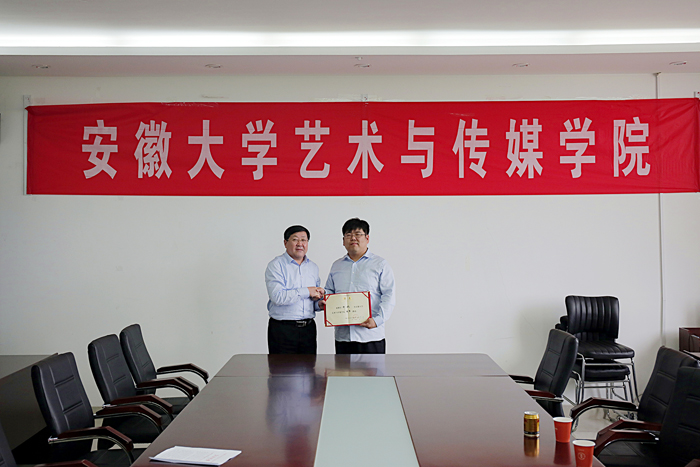 受聘仪式在学院第一会议室举行,学院党委书记、院长周之虎教授代表学院对郑斌表示欢迎并介绍了学院的组建及安徽艺术学院的筹建情况,对郑斌在安徽艺术学院筹建的关键时期给予的专业支持表示感谢!随后,周书记为郑斌颁发了客座教授聘任证书。组织人事处处长曹晓富,教务处、科研处处长韩大国,音乐舞蹈系主任孙来法陪同出席聘任仪式。