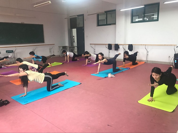 学院瑜伽课程由工会女工委员会组织,针对我院全体女教职工开设的。瑜珈课每周二和周五的12点开课。开课的目的是让女教职工在忙碌的工作之余,锻炼身体,享受瑜伽带来的轻松与愉悦。(图/文 张蕊)