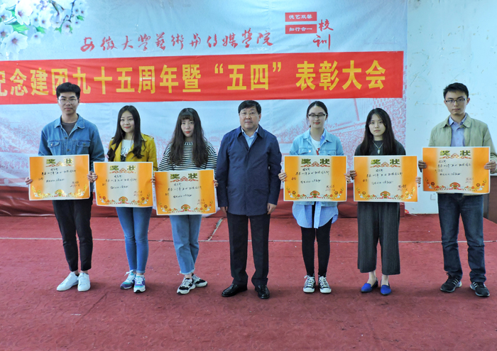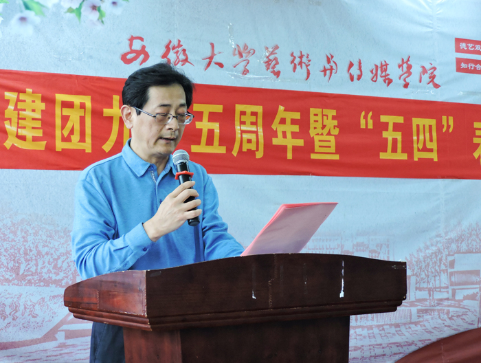 2017年5月4日下午三点半,安徽大学艺术与传媒学院纪念建团九十五周年暨“五四”表彰大会在一教二楼阶梯教室举行。院党委书记、院长周之虎,院党委副书记沈端良,院学生处处长刘长华,音乐舞蹈系党总支书记孙来法,戏剧影视系党总支副书记陈明海,院团委书记陈明出席会议,五四表彰人员和学生代表约120人参加此次大会。大会由院团委副书记龙源主持。