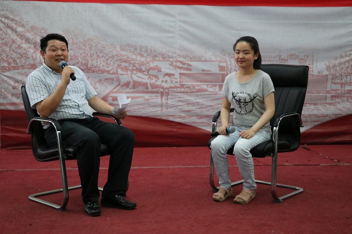 在互动环节,王香君就“如何练琴”、“面对挫折怎么办”等问题同大家进行了热烈的交流。音乐舞蹈系党总支书记孙来法教授也表达了自己对香君同学的敬意,他说“一个眼睛看不见的孩子,钢琴弹得如此出神入化非常不容易。面对失彩的人生,她用她的琴键演绎了多彩的命运交响曲。”
