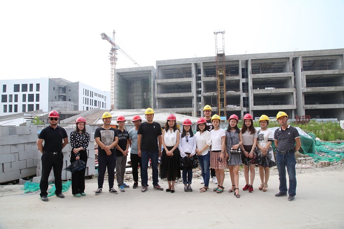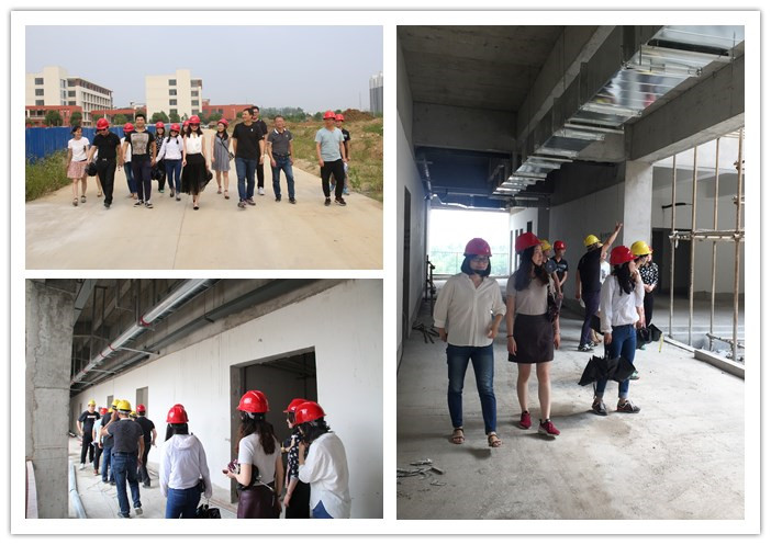 大家在基建部同事的带领下,首先了解了新校区的整体规划布局,先后参观了美术楼、艺术设计楼等,最后走进正在施工的播音主持楼楼体内部,进行了重点参观。大家逐层参观了黑匣子演播厅、形体训练室、广播直播实训室、电视直播实训室、文博讲解实训室、多媒体教室、报告厅(会议主持实训室)和办公室、教研室。大家面对初现雏形的教学、办公环境十分激动,也充满了期待,纷纷针对新教室、新实训室的规划使用、装修设计献计献策,表示要把新的教室实训室当作新的阵地,努力工作,不负青春。