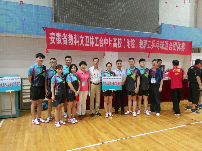 6月23日,我院教职工乒乓球代表队参加了由省教科文卫体工会主办,安徽建筑大学和合肥学院联合承办中片各高校(附院)教职工乒乓球混合团体赛。赛前,省教科文卫体工会主席凤桦、副主席唐成亲切慰问我院代表队并加油打气。