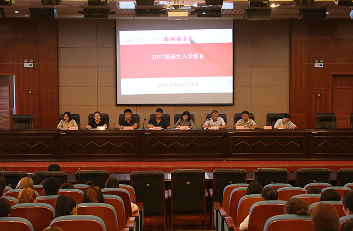 欢聚金秋迎新生,激扬青春颂明天。9月23日下午,我院新闻播音系在学院学术报告厅成功举办2017级新生见面会。新闻播音系党总支副书记、副主任王琍琍等系领导及17级辅导员出席见面会,系办公室主任刘涛主持会议。