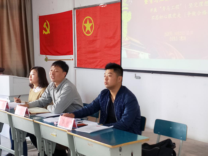 随后,陈伟伟阐述了贯彻落实十九大内容的必要性,号召同学们做到学而信、学而用、学而行。秦帅带领团学干部们学习了新写入党章的十条思想。张井水则从三个方面对十九大进行了解读。一是要学认真领会和深入解读十九大的理论创新和理论贡献;二是要消化党的十九大精神,树立民族自信心,明确“社会主义现代化强国”的目标;三是要落实“学生管理”制度,加强思想作风建设,每个团学干部都要充分发挥带头作用。在“专业建设”上教学相长,脚踏实地。同学们认真听完后,围绕着十九大展开了热烈的讨论。