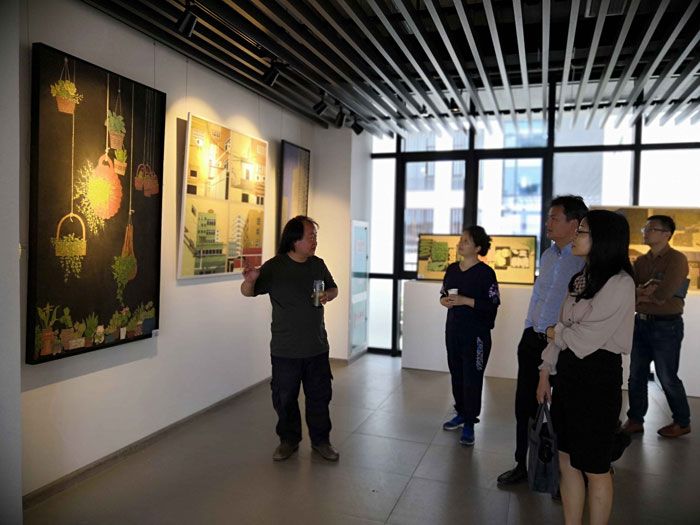 随后,在美术设计系党总支书记罗耀东的引领讲解下,党员们参观了美术设计系毕业创作画展,拓宽视角,领会其精神内涵。