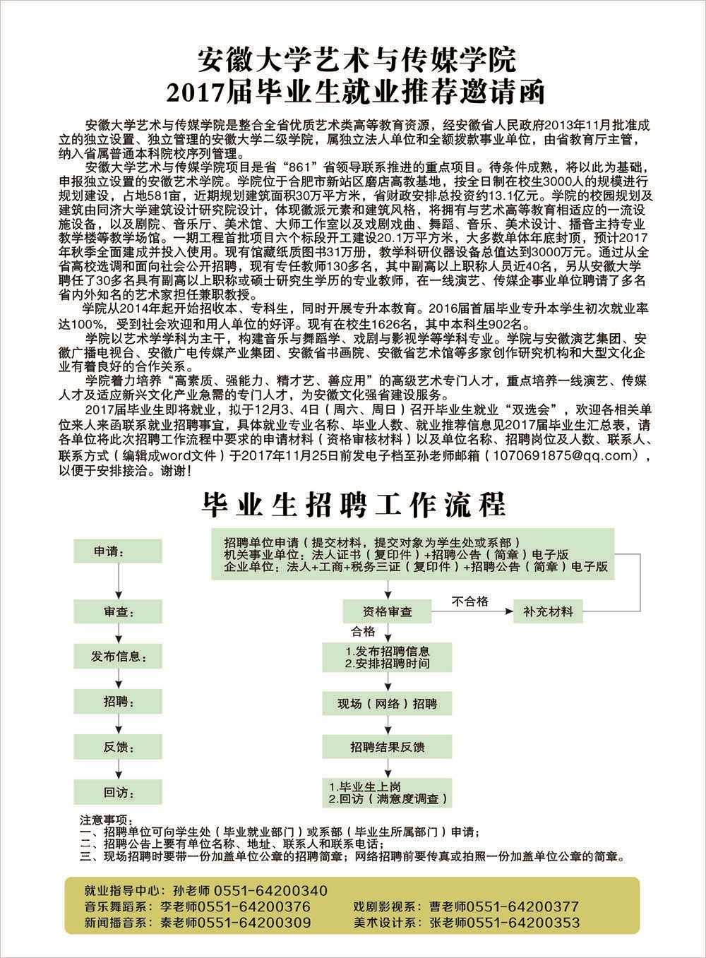 热烈欢迎参加2017届毕业生专场招聘会的单位和来宾,我们期待与各单位进一步加强沟通、交流,尤其就专业人才培养、学生就业创业、学生顶岗实习等开展横向交流互动,欢迎有意向的单位与我们取得联系。谢谢!
