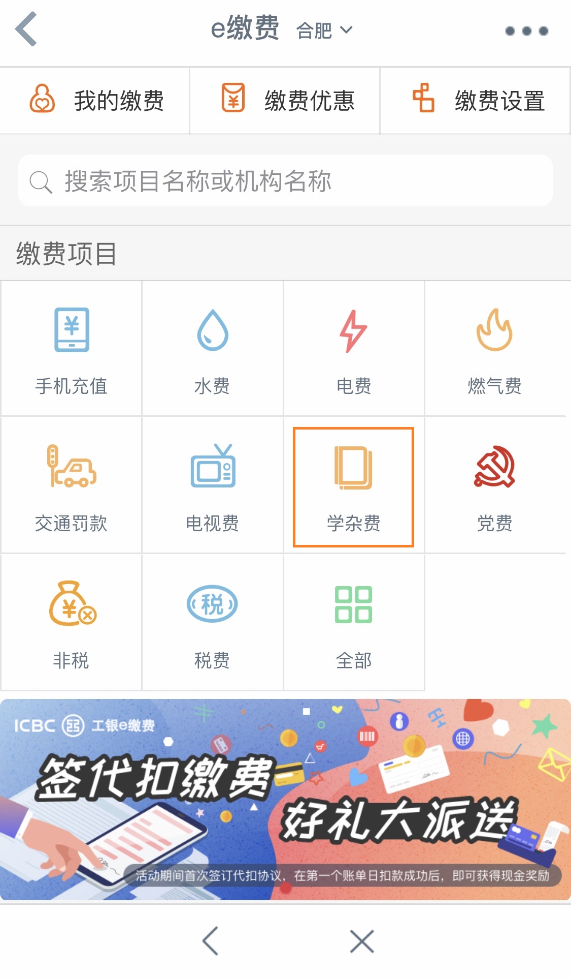 1、请使用微信/工行手机银行/工银融e联扫描缴费二维码。