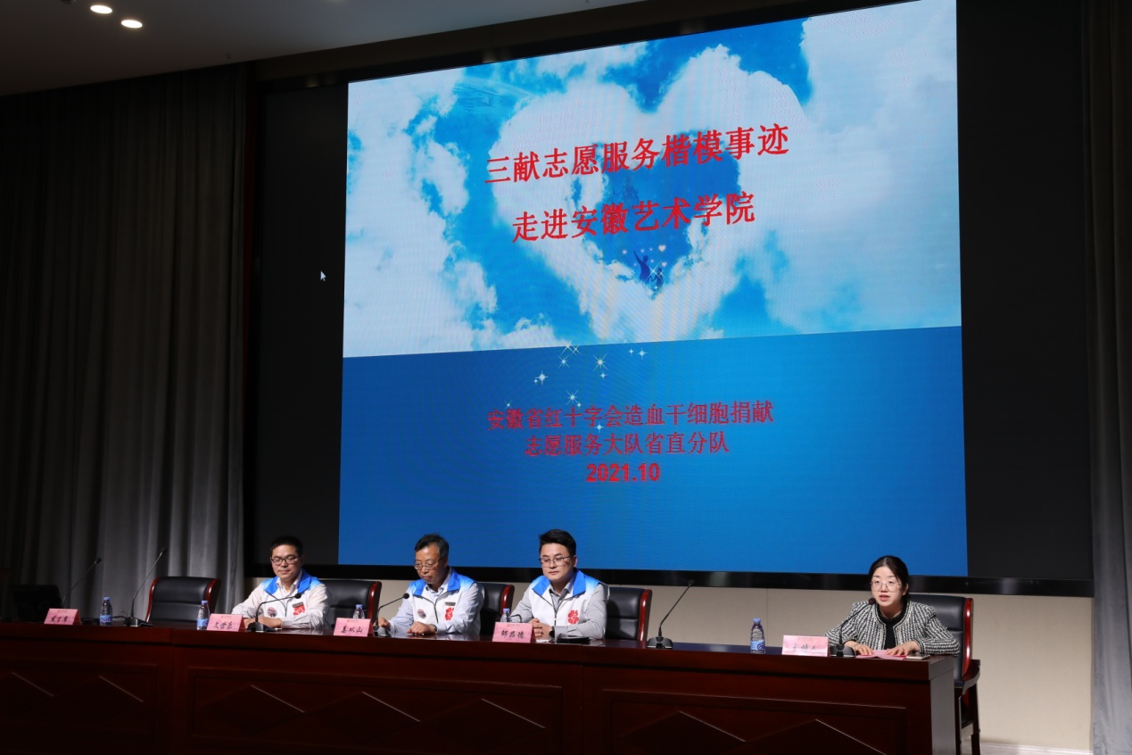 10月27日下午,马克思主义学院邀请安徽省红十字会造血干细胞捐献志愿服务大队省直分队队长文世乐、队员代表姜丛山、邵品德在综合楼五楼学术报告厅为全校200余名学生作了一场生动的“真情流淌,血脉相通”主题报告会。校党务负责人、马克思主义学院院长沈端良出席报告会。报告会由马克思主义学院副院长陈昀岚主持。