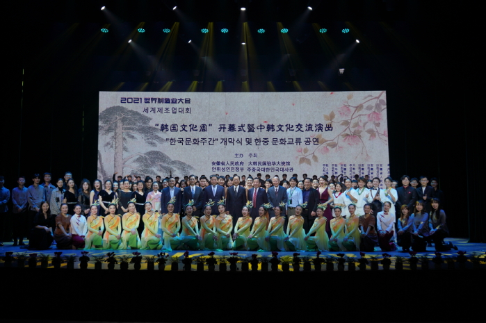 11月19日,由安徽省人民政府、韩国驻华大使馆主办,安徽省外办、省文旅厅、省教育厅、安徽艺术学院等承办的 “2021世界制造业大会韩国文化周开幕式暨文艺演出”在安徽艺术学院小剧场隆重举行。安徽省人民政府副省长周喜安、安徽省人民政府外事办公室主任雍成瀚、省教育厅厅长赵振华、省文旅厅厅长袁华、学校党委书记周明洁、院长樊嘉禄,大韩民国驻上海总领事馆总领事金胜镐以及中韩代表150余人出席演出开幕式。(撰稿:音乐舞蹈系 编辑:朱新水 审定:张雷雷)