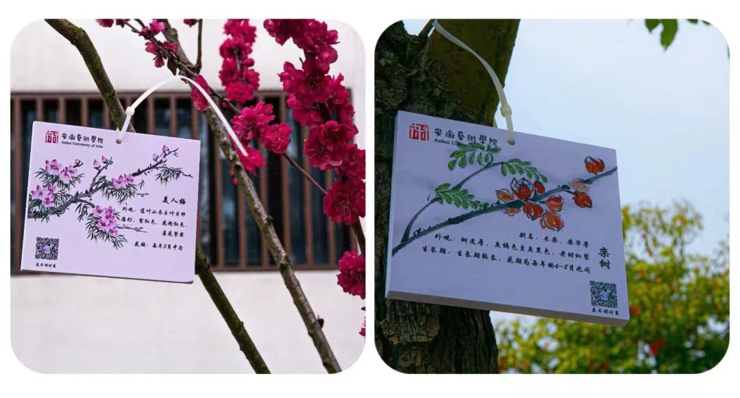 一场“‘植’此青绿”,在植树劳动之外,延伸出小树认养、“青春护绿”等一系列活动。美术设计系团总支面向全系征集树木卡牌设计,手绘身份牌上不仅绘有植物的样子,还标注了名称、科属。师生们相互配合,共同给校园内的小树挂上一块块限量定制款身份牌,铭志于树、寄情于绿。