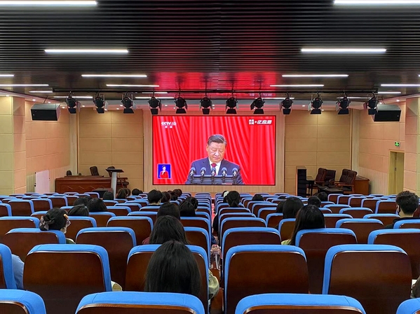 学校党委组织党员干部和师生员工代表集中收看党的二十大开幕会盛况,认真聆听、学习习近平总书记代表中国共产党十九届中央委员会向大会作的报告。各党总支(直属党支部)、党支部,通过电视、网络直播等多种方式收看收听党的二十大开幕会盛况。