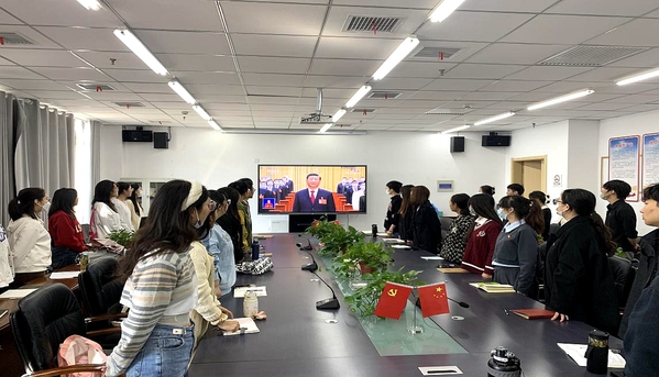 设计学院学生党支部组织学生党员集中收看党的二十大开幕盛况。