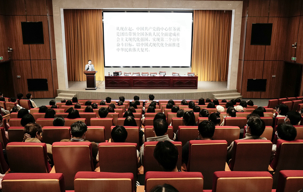 樊嘉禄结合党的二十大精神,围绕要成为怎样的人、大学阶段如何学习、为什么要考研以及如何提高阅读效率四个方面展开,强调同学们要德智体美劳全面发展,学会自主学习、终身学习,倡导多读书、读好书,带着问题和目的去读书。