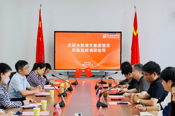 双方就学生就业、艺术实践、实习基地建设等充分交换意见,并就人才供需工作达成初步合作意向。双方表示,将进一步加强合作,探索产学研创新发展新模式,拓展合肥演艺新市场,打开校企合作新局面。