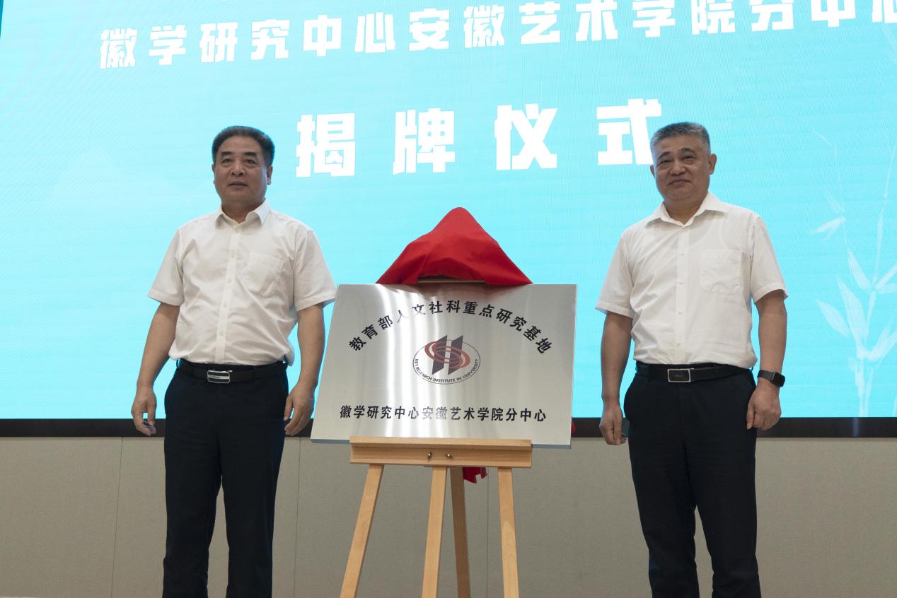 会议期间,十四届全国政协委员、安徽大学副校长钱家盛,党委委员、副校长柳友荣,共同为教育部人文社科重点研究基地“徽学研究中心安徽艺术学院分中心”揭牌。