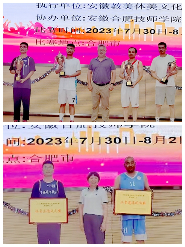 7月30日至8月2日,由安徽省篮球协会主办的2023年安徽省职工篮球系列赛在合肥技师学院举行,学校教职工篮球队荣获高校教工组三等奖及体育道德风尚奖。
