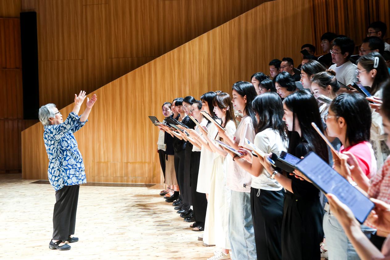 21日上午,中国国家大剧院合唱团艺术总监、中国合唱协会副理事长、中国音乐学院指挥系教授吴灵芬在合唱指挥大师班上为来自全省各地的音乐教师作合唱指挥教学,强调合唱指挥要具备两个方面能力:做好作品的案头工作,抓住作品的重点和音符。授课过程中,老师们多次展开教学互动,现场有唱有和、干货满满。
