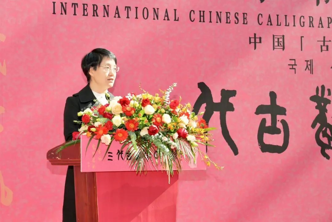 韩军代表主办方对各位领导、专家学者的莅临表示热烈欢迎。汉字是中华文明形成的标志之一,是中华文化的基因。古汉字是汉字的源头和中华优秀传统文化的根脉。这次展览与论坛的定位是五个面向:面向教育、面向学术、面向当下、面向世界、面向未来。展出的书法作品“文心书面、以书焕采”,足以让国内外各界朋友充分欣赏到古汉字书法的艺术魅力。