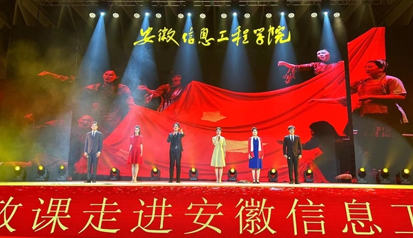 11月4日晚,由安徽艺术学院、安徽信息工程学院联合主办的“共筑思政梦 点亮青春红”艺术思政课在安徽信息工程学院体育馆内开讲。安徽信息工程学院师生代表现场观课,馆内气氛热烈。