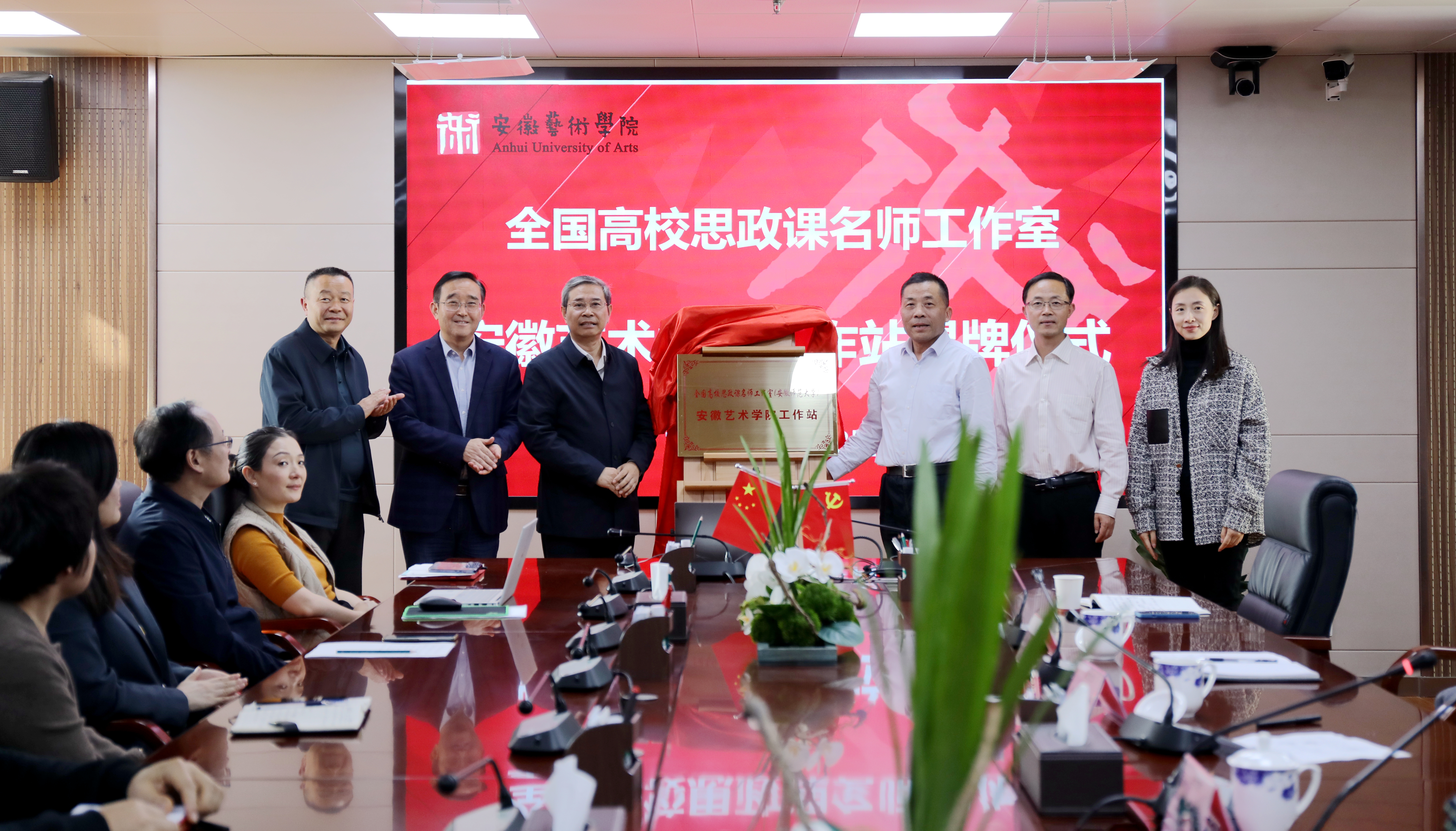 11月8日,“全国高校思政课名师工作室(安徽师范大学)安徽艺术学院工作站”揭牌仪式暨思想政治教育教学工作座谈会在我校举行。党委副书记、校长樊嘉禄和党的二十大代表、全国最美思政课教师、安徽师范大学马克思主义学院教授路丙辉为工作站揭牌。马克思主义学院院长吴孔铎主持仪式。