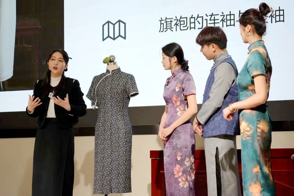 戏剧学院姜楠在《新服装设计与工艺Ⅱ》中讲述传统服装背后的含蓄美,从旗袍的演变史,到学生们的旗袍装,再到拿起布料剪刀现场演示“省道”“归拔”,最后回归于舞剧中服化道的特殊性。什么样、怎么来、如何用,整堂课娓娓道来。