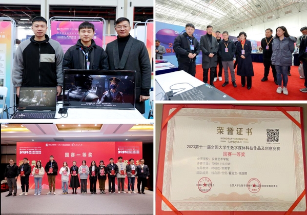 11月26日,2023年第十一届全国大学生数字媒体科技作品及创意竞赛全国现场总决赛在江苏省常州市圆满落幕,我校设计学院数字媒体艺术专业钱启源、倪侃、翟迎龙、杨浩然4位同学合作完成的虚幻引擎CG动画作品《TORSO VISITOR》在众多作品中脱颖而出,荣获本次大赛自主命题“影视与动漫设计”赛道一等奖,成为安徽省高校在该赛道的唯一最高奖项获得者(安徽区国赛全赛道一等奖仅4项)。叶明胜和邹荣学老师获全国总决赛“优秀指导教师”称号。